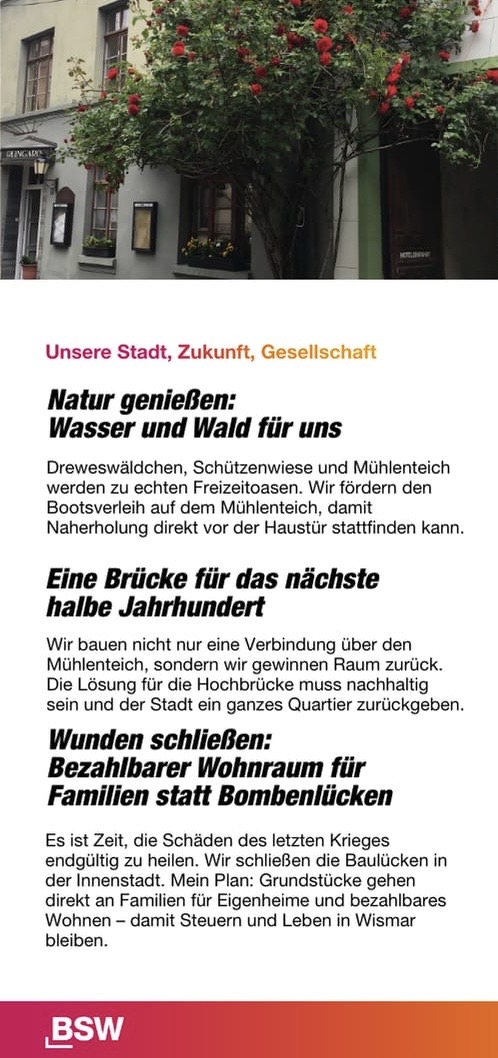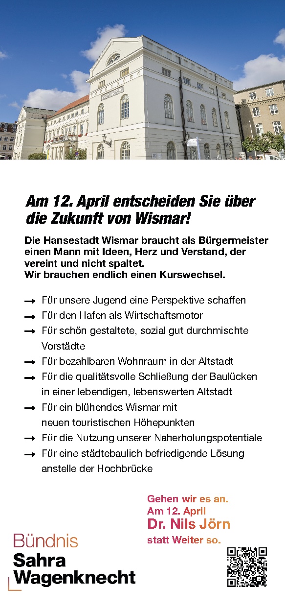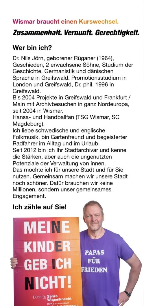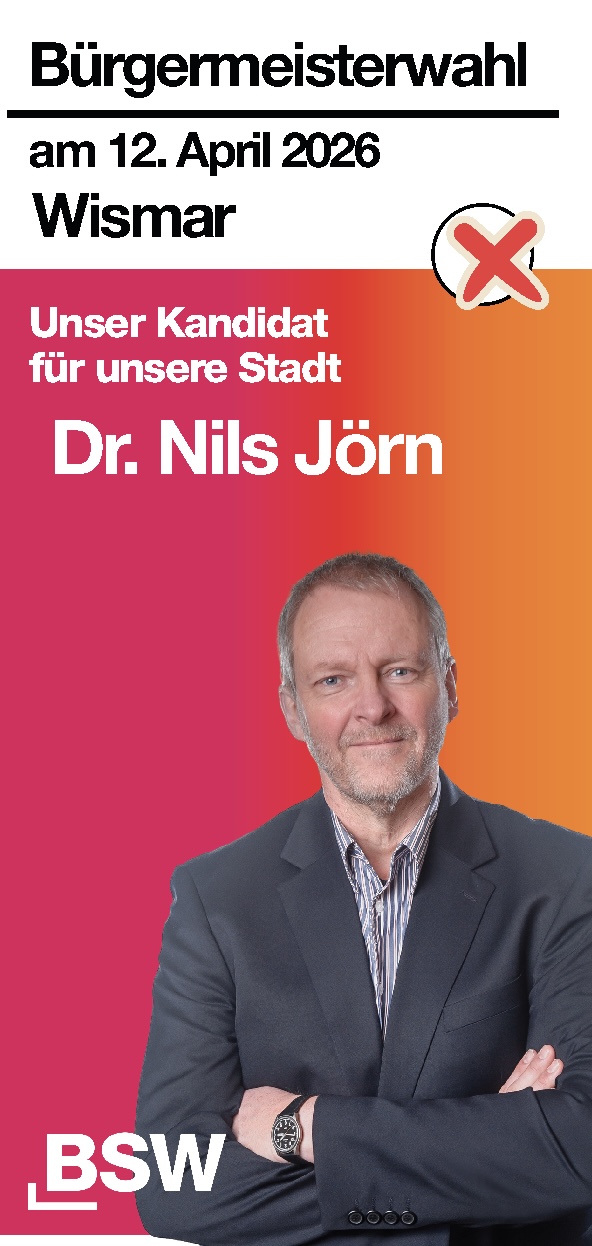 Am 12. April haben Sie die Wahl: Die Hansestadt Wismar wählt einen neuen Bürgermeister. Für das BSW tritt Dr. Nils Jörn an.